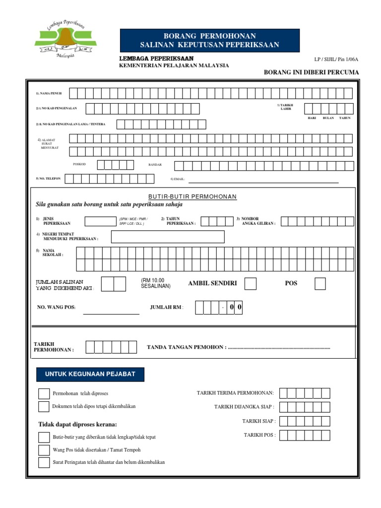 Borang Permohonan Salinan Keputusan Peperiksaan Sijil Hilang Pdf
